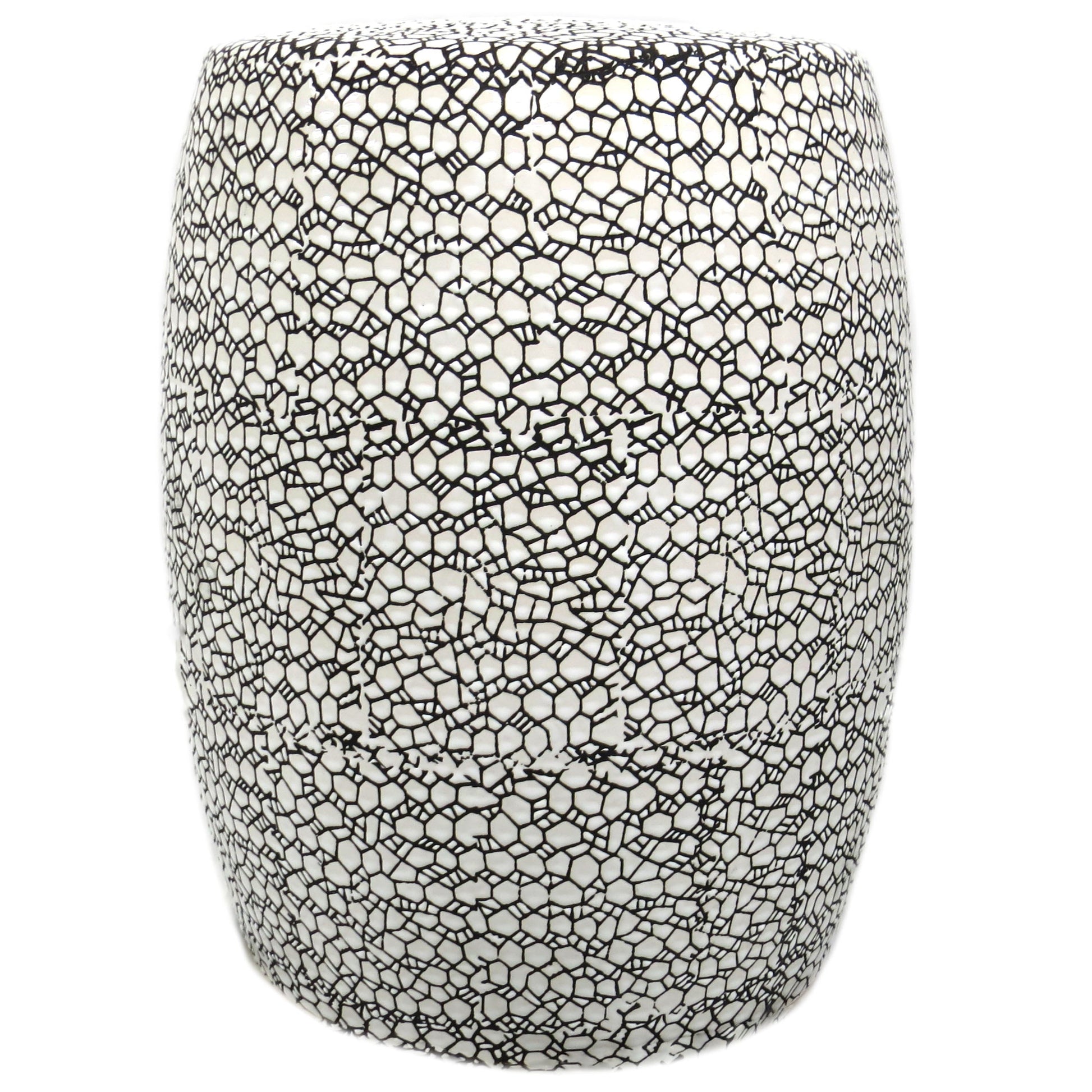34cm(d) x 45.5cm(h) heavy and well weighted, its a sturdy great side table in a unique interesting black and white glaze.